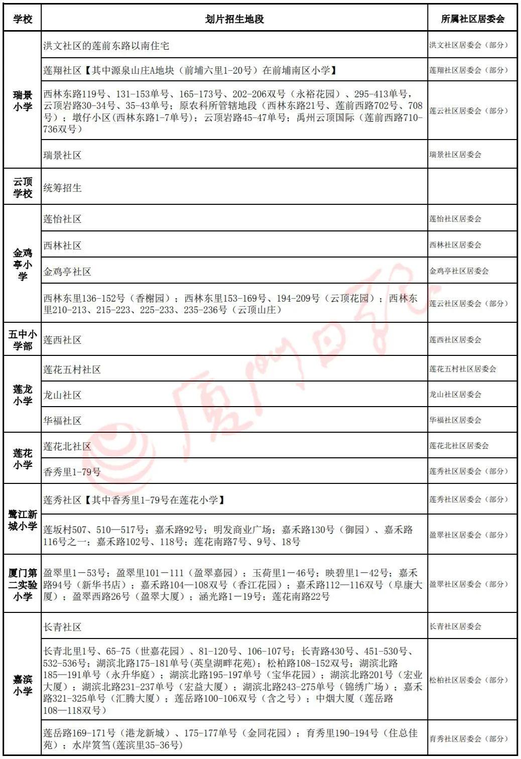 6. "厦门演武小学" - 咨询电话:0592-XXXXXXX