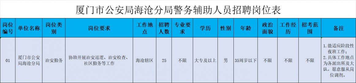 截至我所知的信息,以下是一般性的指南,但请注意,具体招聘信息可能会有所变动,请以厦门市公安局海沧分局发布的官方公告为准。