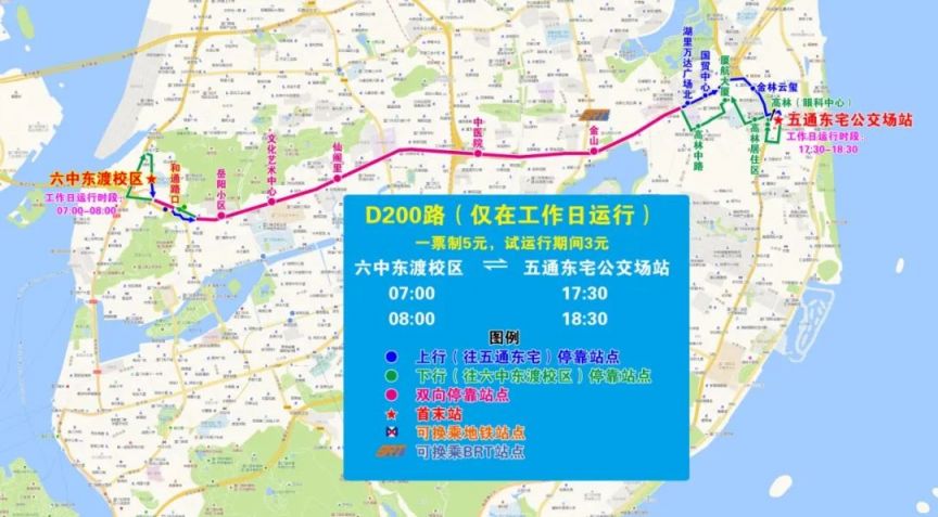二 调整D200路由邮轮中心码头改至六中东渡校区始发,方便和通片区乘客出行D200路