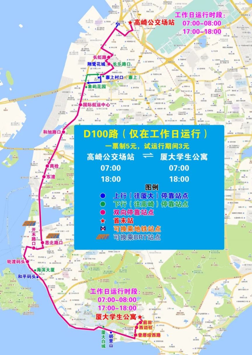 高崎公交场站始发,行至环岛南路曾厝垵西路口,改经曾厝垵西路、曾厝垵北二路至厦大学生公寓。