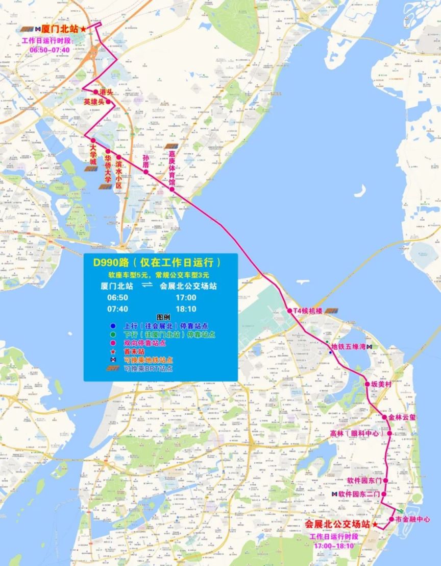 四调整305路变更为D990路,并由孙厝改至厦门北站始发,方便集美区港头社区、滨水社区乘客快速往返岛内东部产业园区D990路