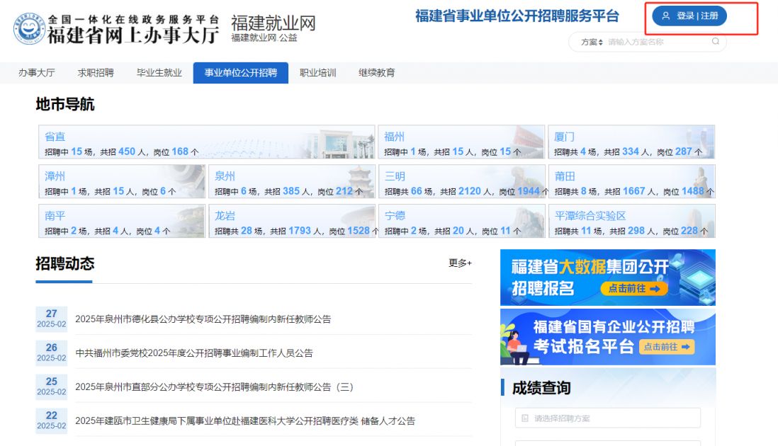您可以通过以下步骤访问福建就业网的事业单位招聘入口,一站式查看最新的公开招聘信息: