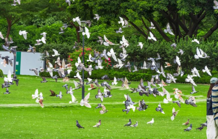 和煦的阳光,最适合约上三两好友或全家出动,在大片平坦的草坪上野餐,随手一拍,都是让心情美炸的大片。小鸽子也是这里的常客,吃饱了顺便喂喂鸽子。