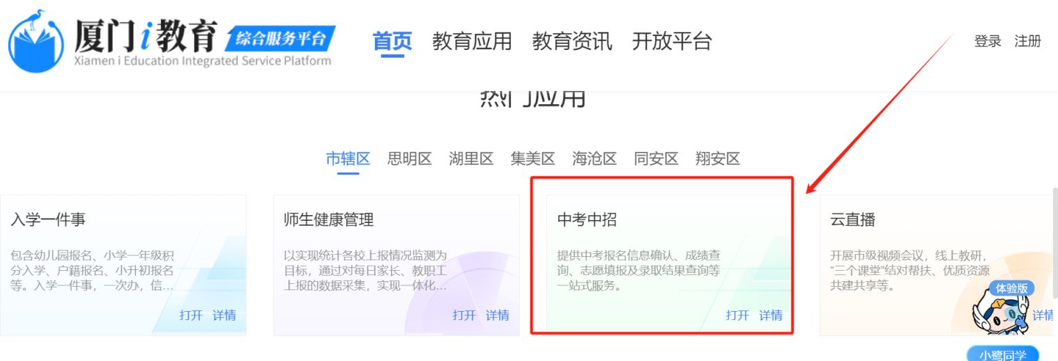 (2)在首页找到“厦门市小中考成绩查询”入口,点击进入。
