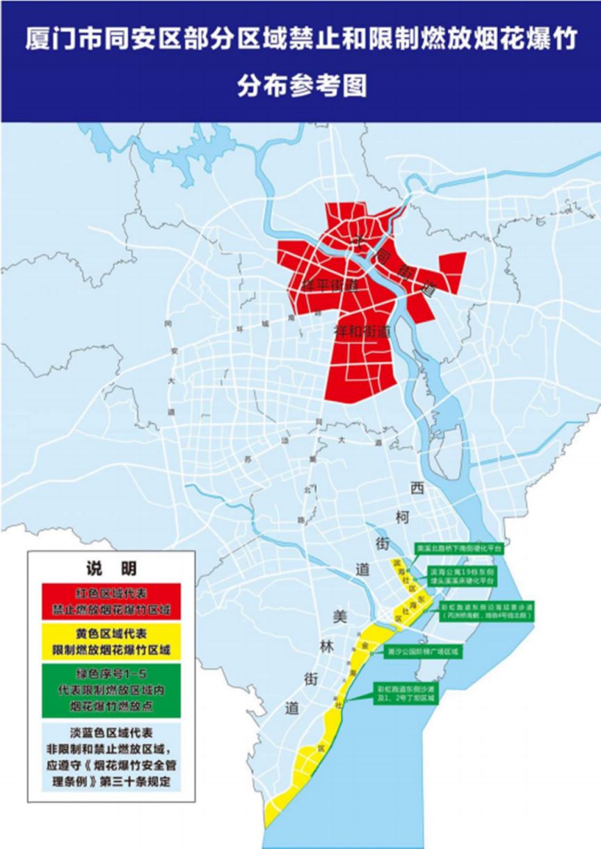 2. "禁放区域":此次禁放措施覆盖了厦门市的思明区、湖里区、集美区、海沧区、同安区和翔安区,这些区域是厦门市的主要城区。
