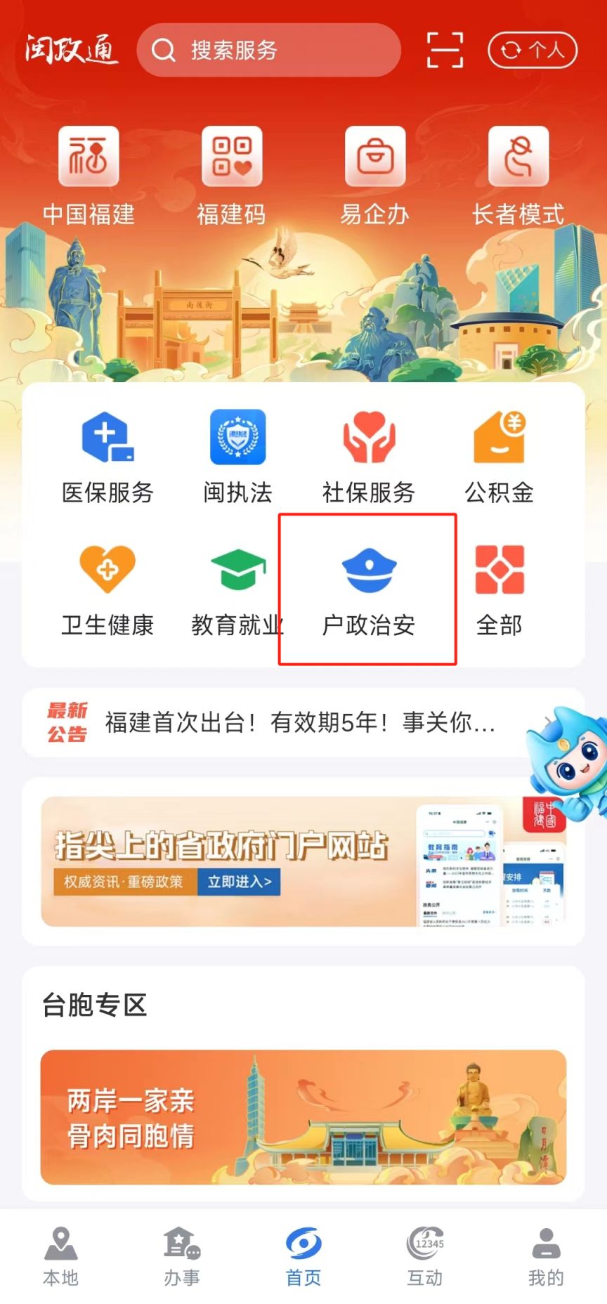 4. "选择服务类型": - 在服务列表中找到“户政服务”,点击进入。
